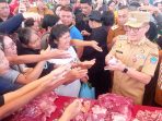 Bupati Joune Ganda jadi “tukang” bagi karcis di pasar murah